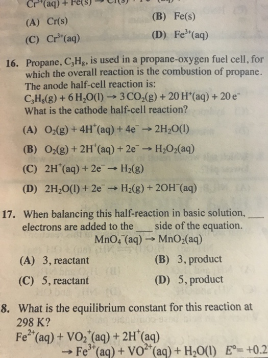 Propane fuel cell reaction.