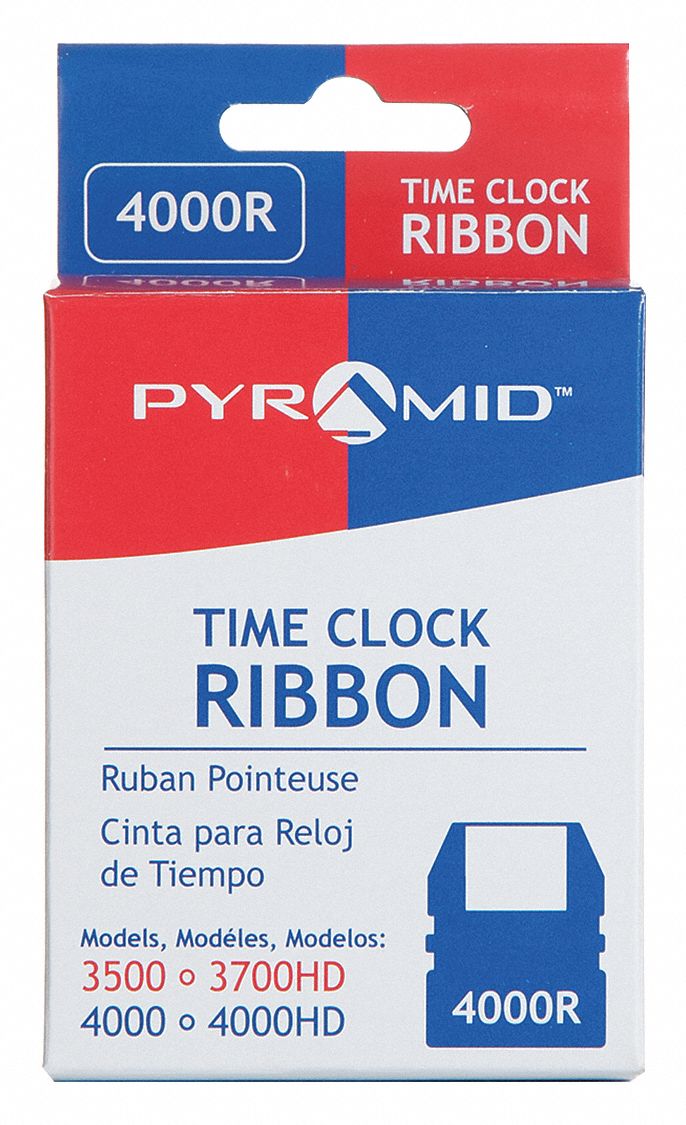 This replacement ribbon is suitable for use with pyramid model 3000hd 3500 3700 4000 and 4000hd time clocks and features airtight sealed construction designed to prevent the ink from drying out or leaking.